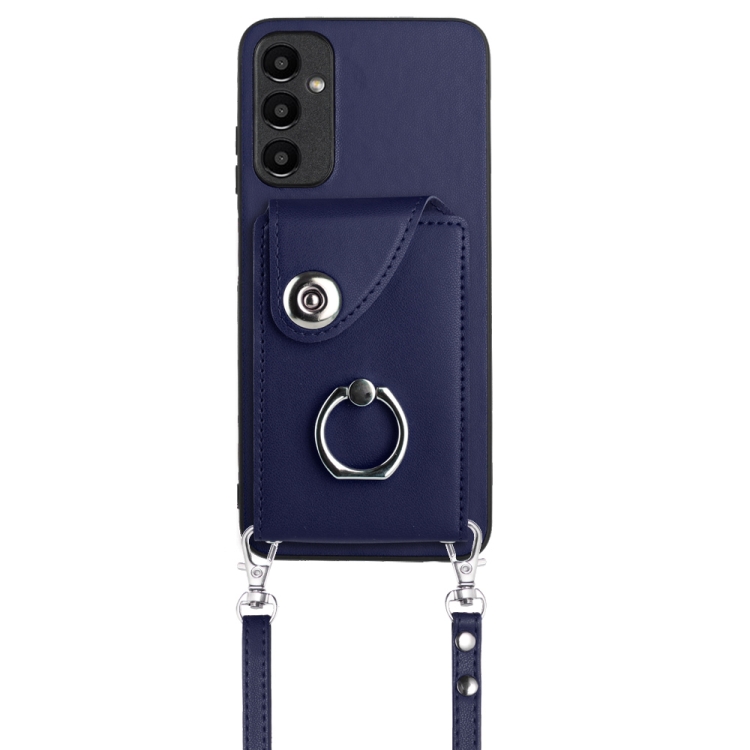 Funda para Teléfono Samsung Galaxy A24 4G con Soporte para Anillo y Bolsa para Tarjeta con Cordón Largo (Azul)