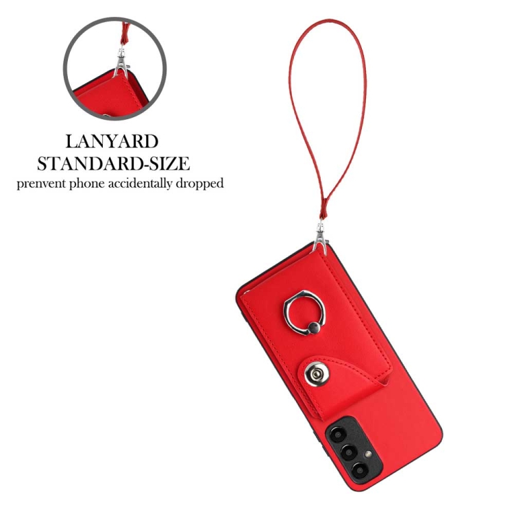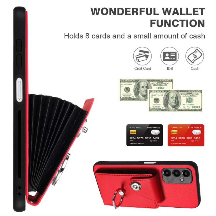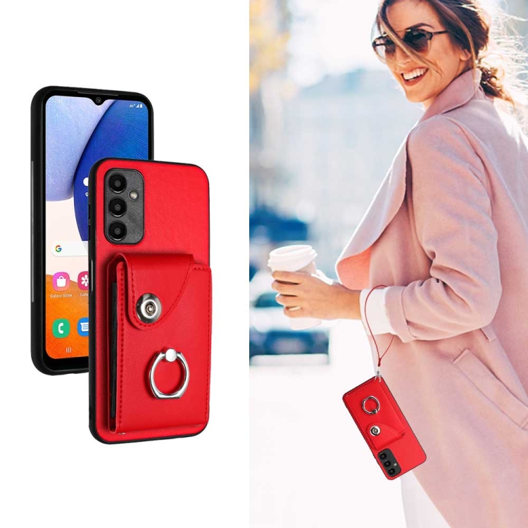 Funda para Teléfono Samsung Galaxy A24 4G de PU con Soporte para Anillo y Bolsa para Tarjeta con Cordón (Rojo)