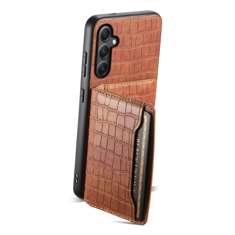 Funda para Teléfono Samsung Galaxy A24 5G Diseño Bolsa para Tarjetas Textura Cocodrilo (Marrón)