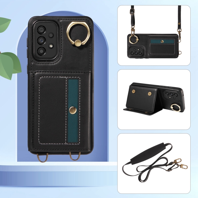 Funda Tipo Billetera Cruzada para Samsung Galaxy A33 5G con Soporte para Anillo y Cuero (Negro)