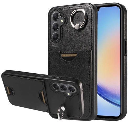 Funda para Teléfono Samsung Galaxy A34 5G con Soporte para Anillo y Ranura para Tarjeta (Negro)