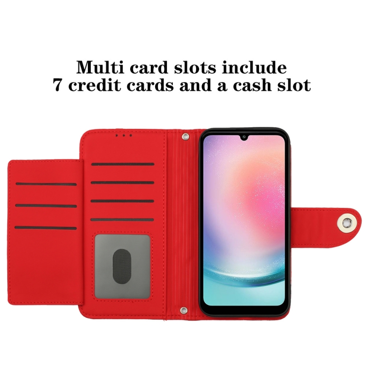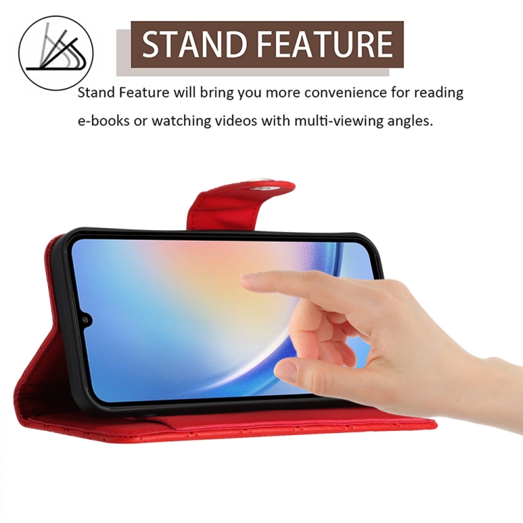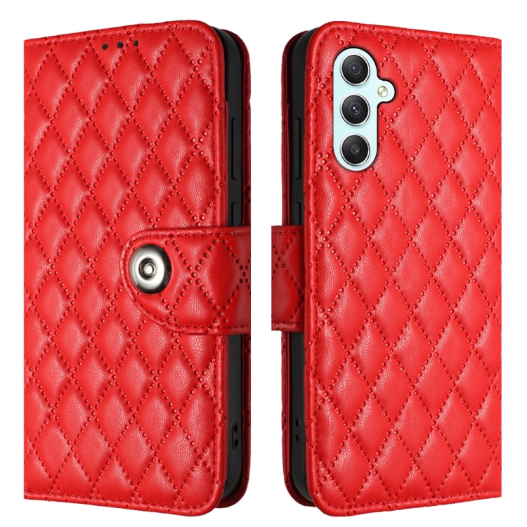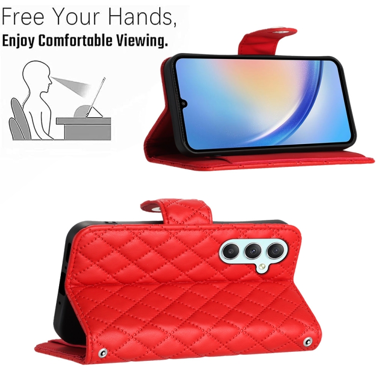 Funda de Cuero para Samsung Galaxy A34 con Tapa Textura Rómbica y Cordón (Rojo)