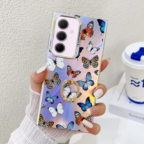 Estuche para teléfono Samsung Galaxy A35 5G con soporte anillo mariposa láser galvanoplastia (Mariposas de Color Ab1)