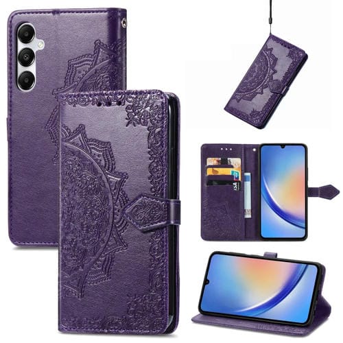 Funda para Teléfono Samsung Galaxy A35 5G Cuero Relieve Flor de Mandala (Púrpura)