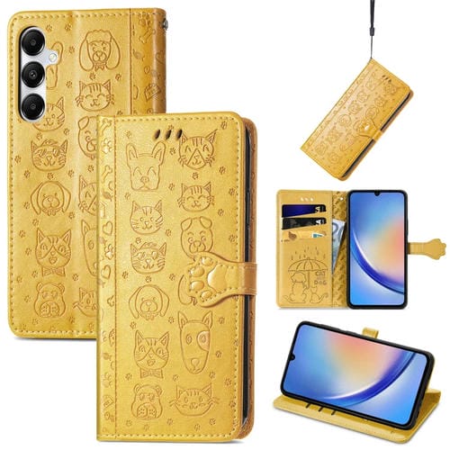 Funda para Teléfono Samsung Galaxy A35 5G Cuero Relieve Perro y Gato (Amarillo)