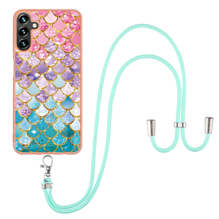 Estuche para Teléfono Samsung Galaxy A35 Imd TPU con Galvanoplastia y Cordón (Escamas de Colores)