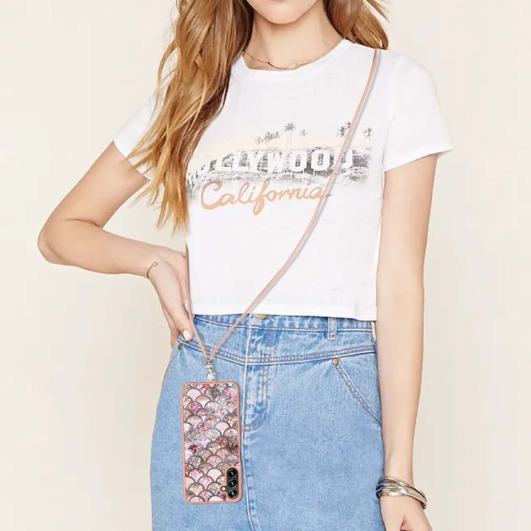 Estuche para Teléfono Samsung Galaxy A35 Imd TPU con Galvanoplastia y Cordón (Escamas Rosadas)