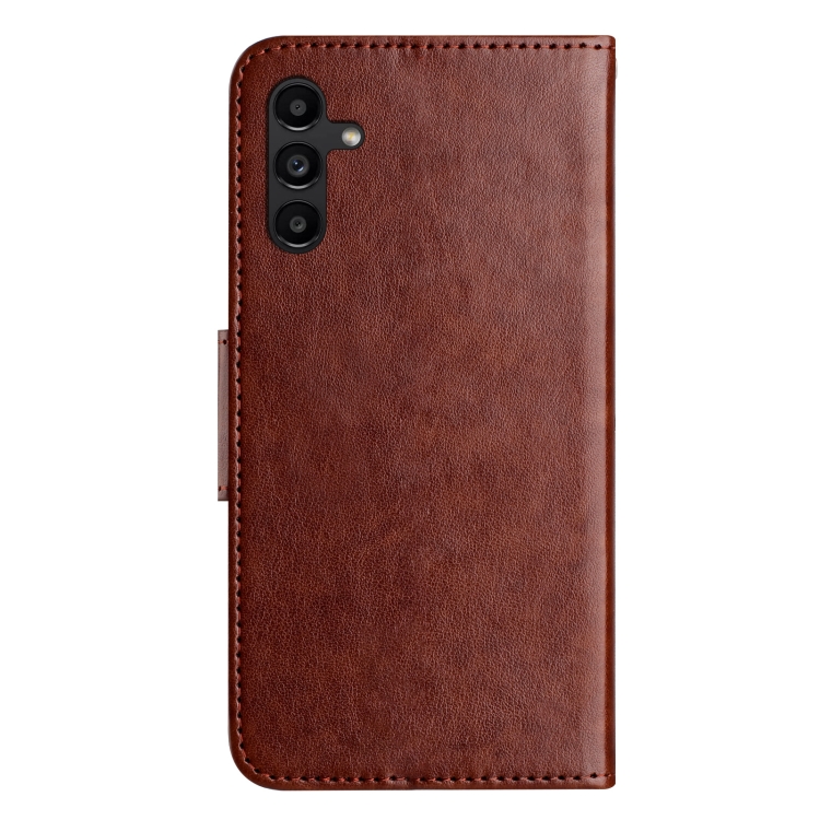 Funda de Cuero para Samsung Galaxy A35 con Tapa y Patrón de Flores de Mariposa (Marrón)