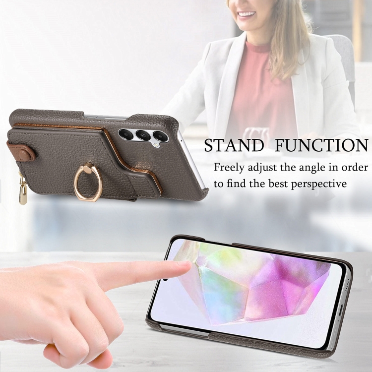 Funda para Teléfono Samsung Galaxy A35 Litchi Leather Oil Edge Ring Zipper Wallet Back (Gris)