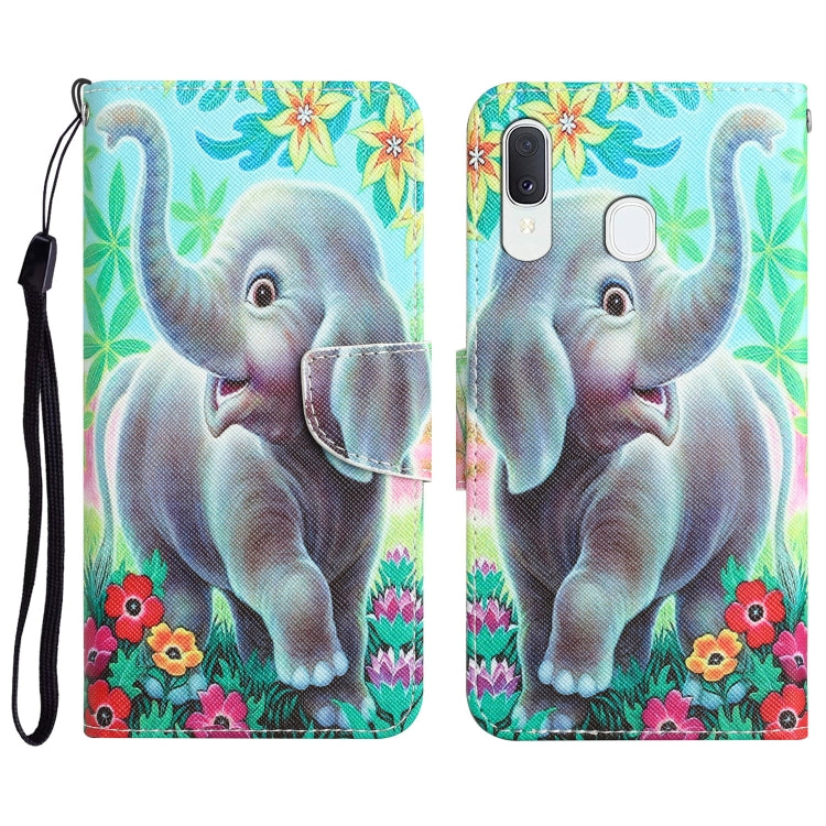 Para Samsung Galaxy A40 Estuche para teléfono de cuero con dibujo coloreado (elefante)