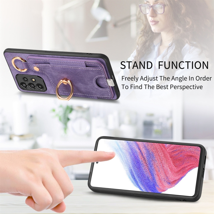 Funda para Teléfono Samsung Galaxy A51 5G con Bolsa para Tarjeta Anillo y Lazo (Púrpura)