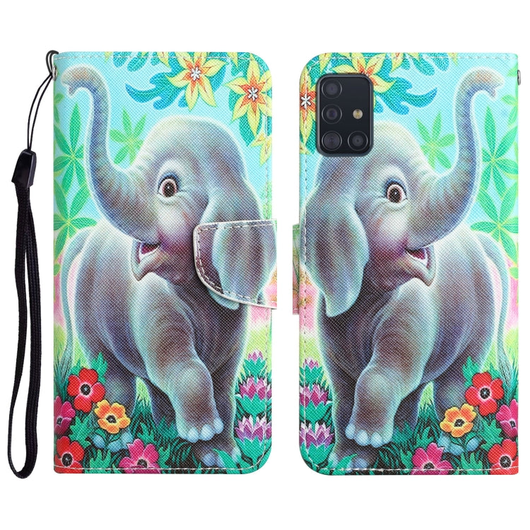 Para Samsung Galaxy A51 Estuche para teléfono de cuero con dibujo coloreado (elefante)