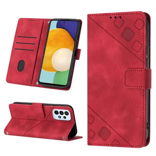 Estuche para Teléfono Samsung Galaxy A52 5G / 4G Cuero En Relieve con Tacto de Piel (Rojo)