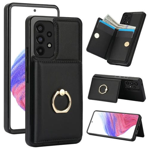 Estuche para Teléfono Samsung Galaxy A53 4G 5G con Soporte Anillo Tarjeta Antirrobo Rfid (Negro)