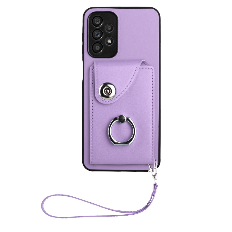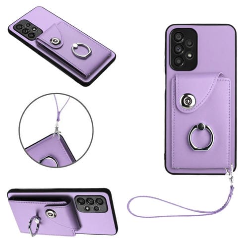 Funda para Teléfono Samsung Galaxy A53 5G de PU con Soporte para Anillo y Bolsa para Tarjeta con Cordón (Púrpura)