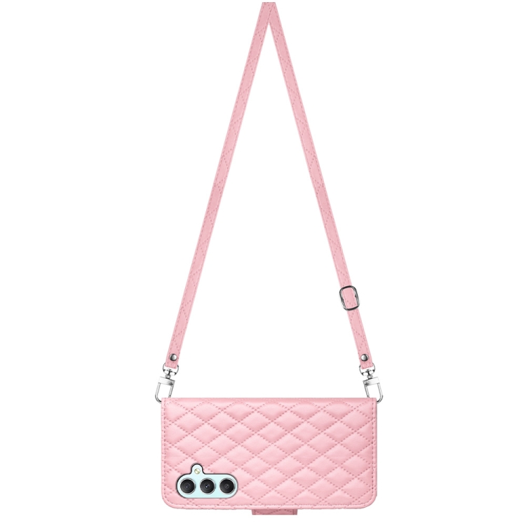 Funda de Cuero Samsung Galaxy A54 con Tapa Textura Rómbica y Cordón Largo (Rosa)