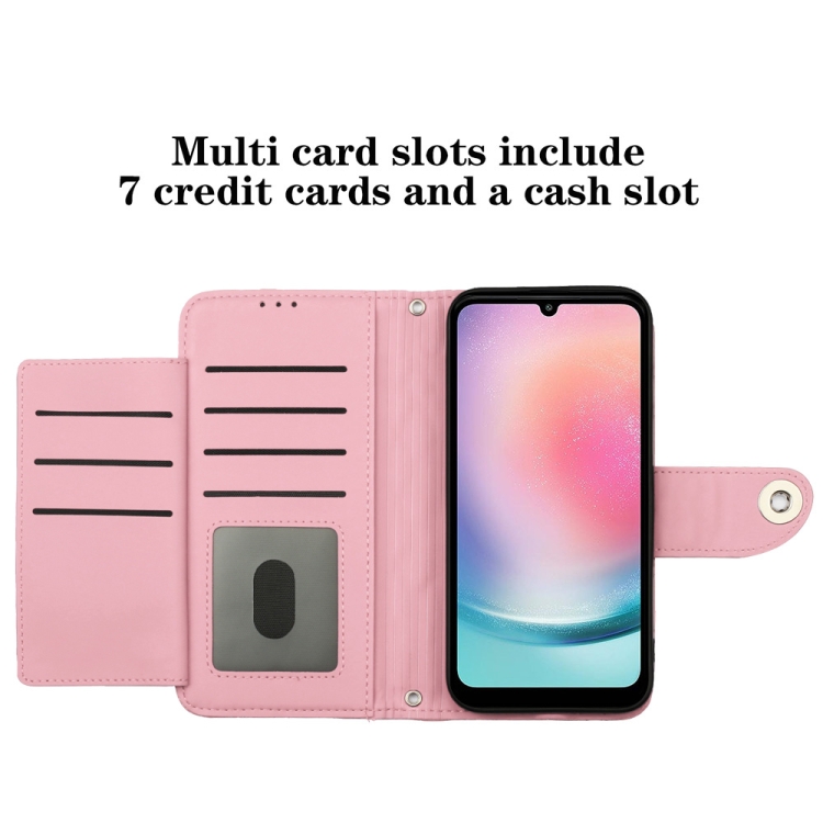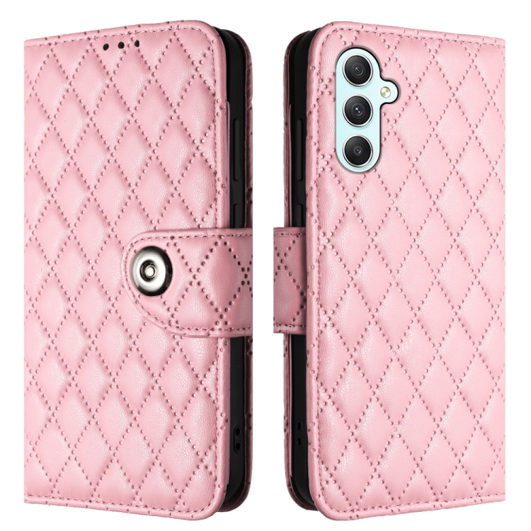 Funda de Cuero para Samsung Galaxy A54 con Tapa Textura Rómbica y Cordón (Rosa)
