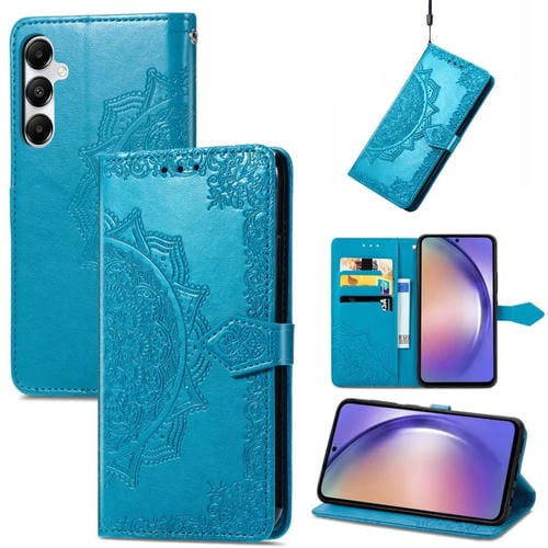 Funda para Teléfono Samsung Galaxy A55 5G Cuero con Relieve Flor de Mandala (Azul)