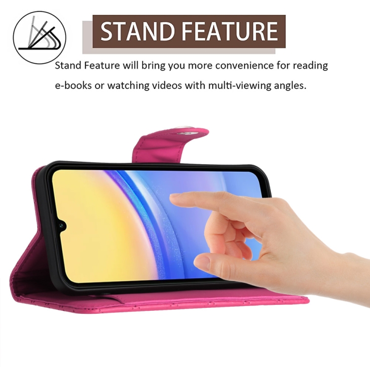 Funda de Cuero para Samsung Galaxy A55 con Tapa Textura Rómbica y Cordón Largo (Rojo Rosa)