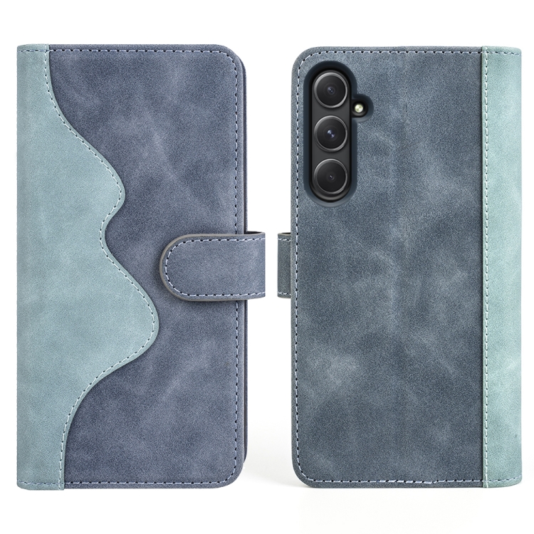 Funda de Teléfono Samsung Galaxy A55 Cuero con Tapa Horizontal y Costura (Azul)
