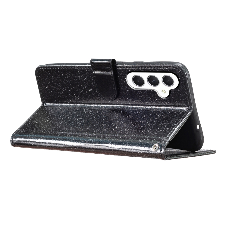 Funda para Teléfono Samsung Galaxy A55 con Tapa de Cuero y Purpurina en Polvo (Negro)