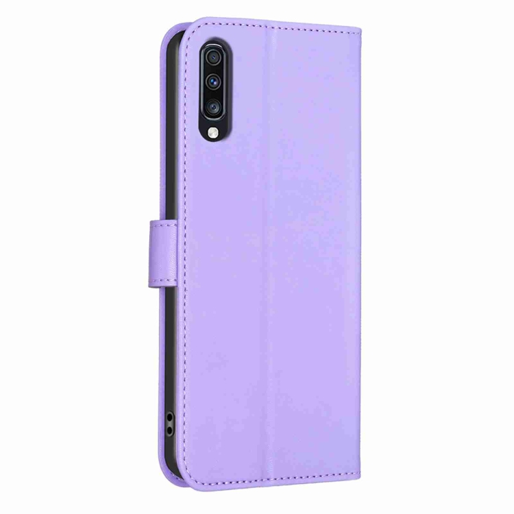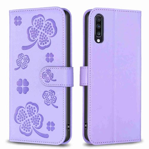 Funda de Cuero Samsung Galaxy A70 con Relieve de Cuatro Hojas (Púrpura)