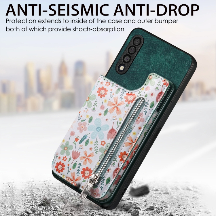 Estuche para Teléfono Samsung Galaxy A72 4G/5G con Billetera y Cremallera Pintada Retro (Verde)