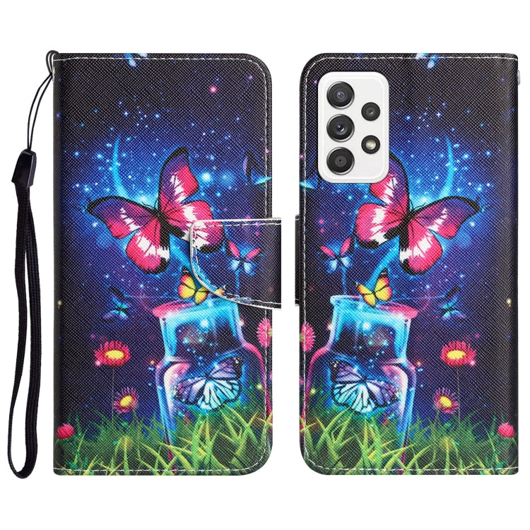 Para Samsung Galaxy A72 5G / 4G Estuche de teléfono de cuero con dibujo coloreado (mariposa de botella)