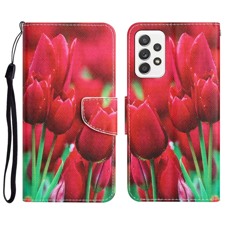 Para Samsung Galaxy A72 5G / 4G Estuche para teléfono de cuero con dibujo coloreado (Tulipanes)