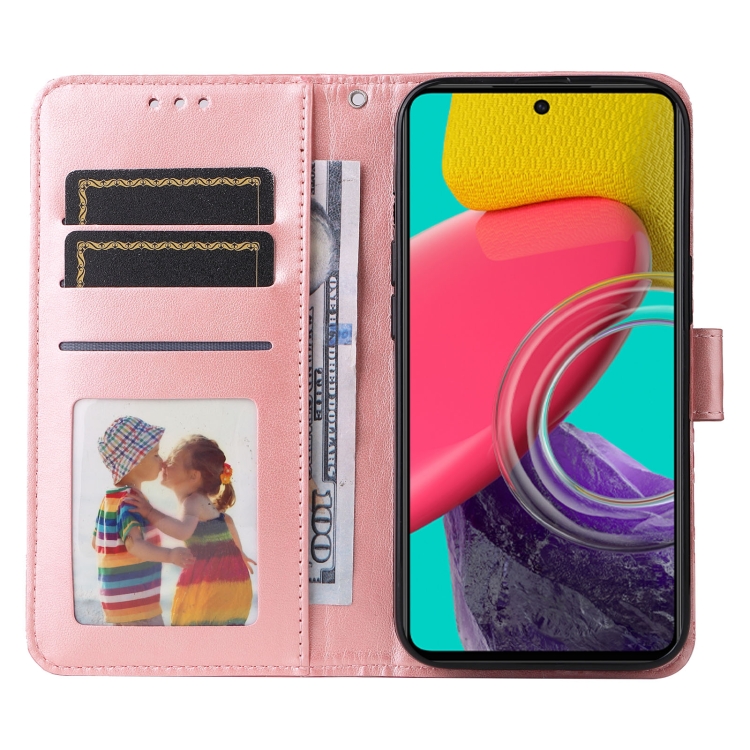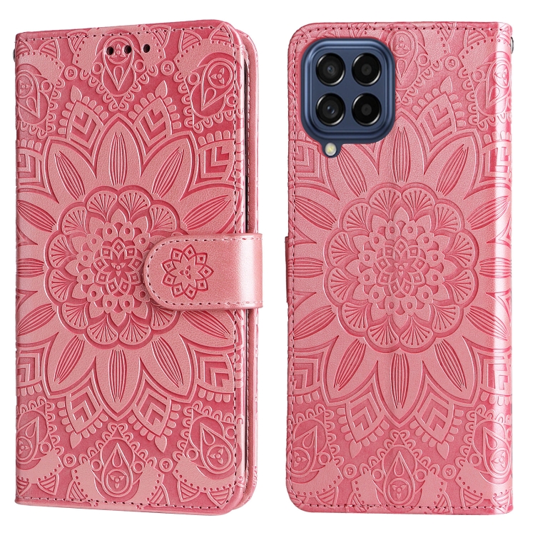 Estuche para Teléfono Samsung Galaxy M53 5G Cuero Estampado de Girasol En Relieve (Rosa)