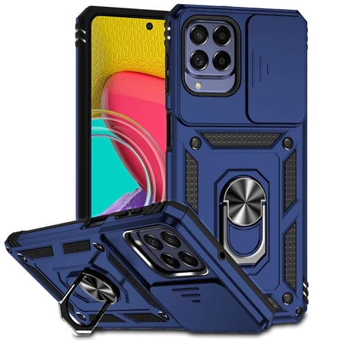 Estuche para teléfono Samsung Galaxy M53 con soporte deslizante para levas (Azul)