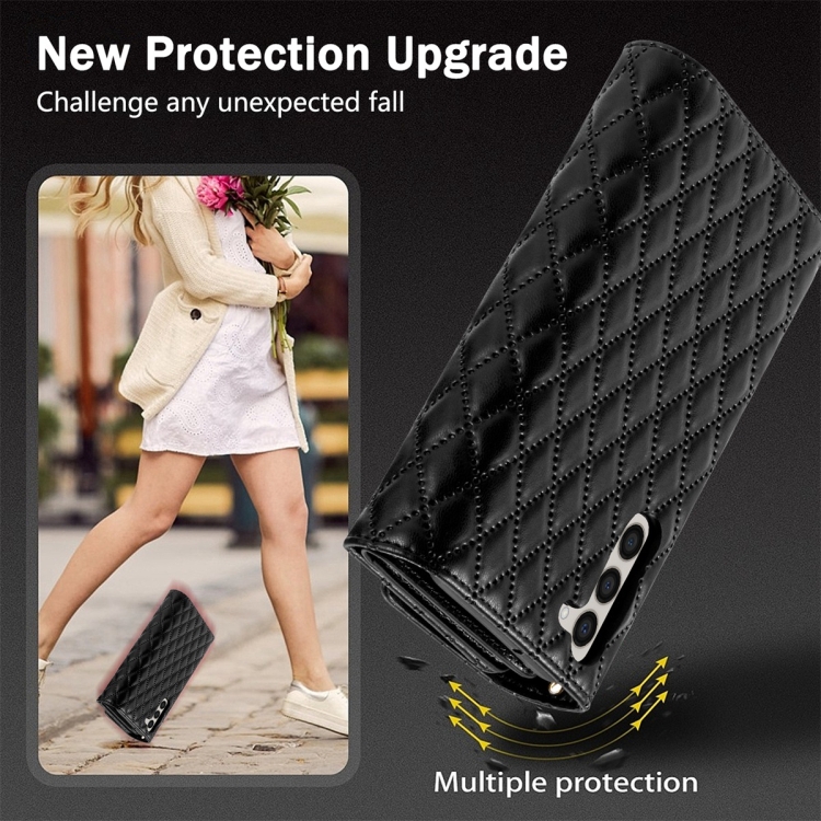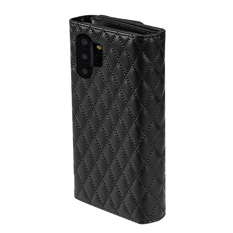 Estuche para Teléfono Samsung Galaxy Note10 Cuero Rómbico con Billetera MultiTarjeta y Cremallera (Negro)