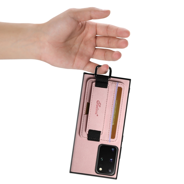 Funda para Teléfono Samsung Galaxy Note20 5G Suteni H13 con Correa para Muñeca de Cuero Litchi (Rosa)