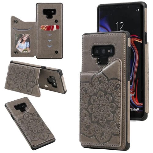 Estuche protector Samsung Galaxy Note9 Flor Patrón En Relieve Soporte Ranuras Tarjetas Marco Fotos (Gris)