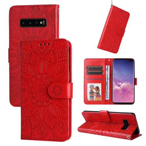 Estuche para Teléfono Samsung Galaxy S10+ Cuero con Estampado de Girasol en Relieve (Rojo)
