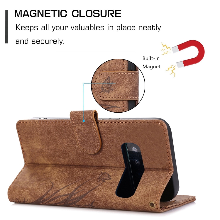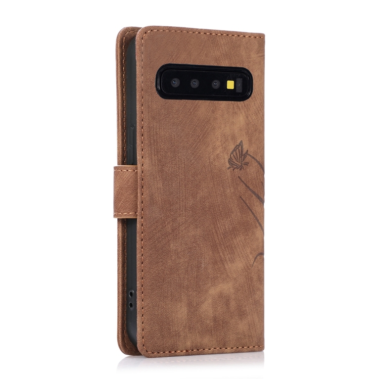 Funda de Cuero para Samsung Galaxy S10 con Relieve de Mariposa Orquídea (Marrón)