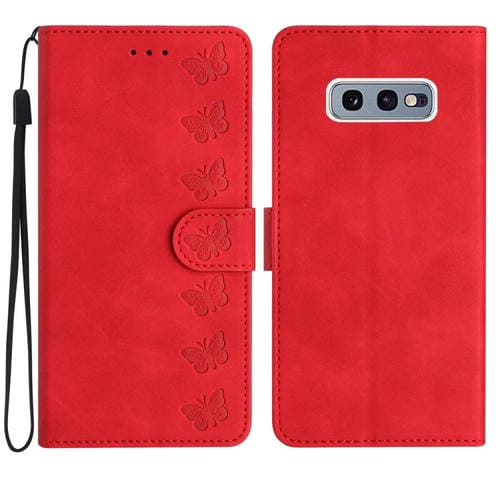 Caja de Teléfono de Cuero En Relieve para Samsung Galaxy S10E Seven Butterflies (Rojo)