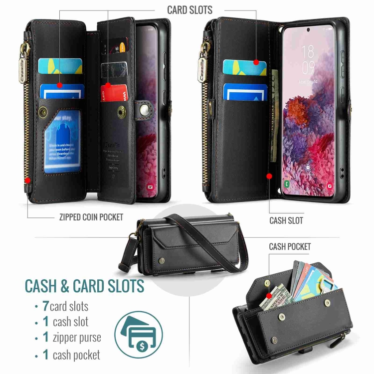 Estuche para Teléfono Caseme C36 para Samsung Galaxy S20 Cartera con Ranuras para Tarjetas y Cremallera (Negro)