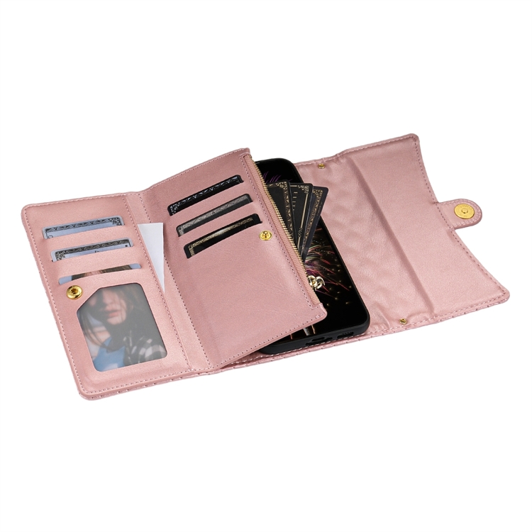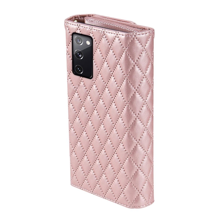 Estuche para Teléfono Samsung Galaxy S20 FE Cuero Rómbico con Billetera MultiTarjeta con Cremallera (Oro Rosa)