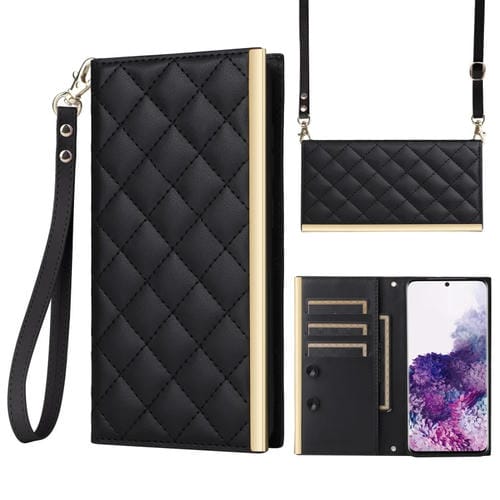 Funda Cruzada de Cuero con Ventosa Romboidal para Samsung Galaxy S20 (Negro)