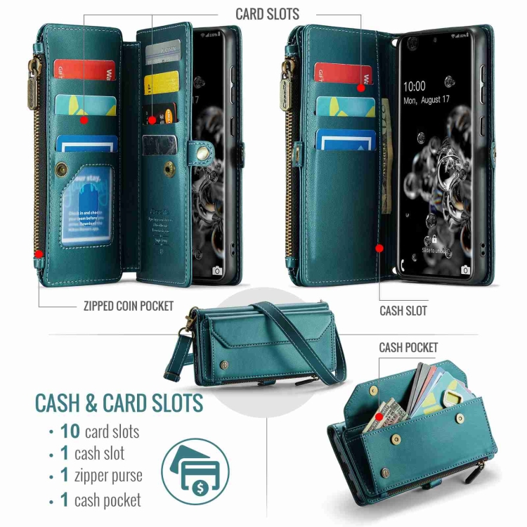 6. 10 ranuras para tarjetas + 2 ranuras para efectivo + 1 bolso con cremallera + Correa larga para el hombro + correa corta para la mano (en realidad, según la imagen)