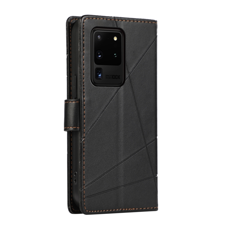 Funda para Teléfono Samsung Galaxy S20 Ultra Textura Cuero Genuino Línea En Relieve (Negro)