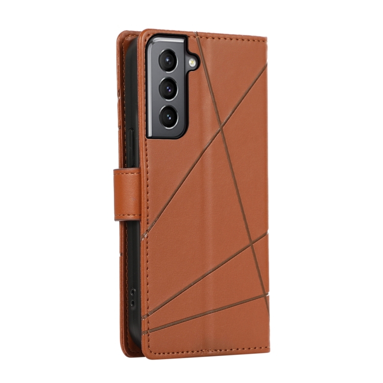 Funda para Teléfono Samsung Galaxy S21 5G Pu con Línea en Relieve y Textura de Cuero Genuino (Marrón)
