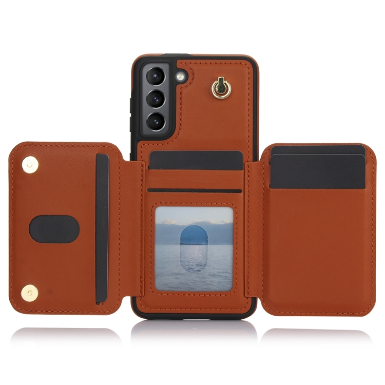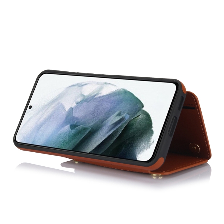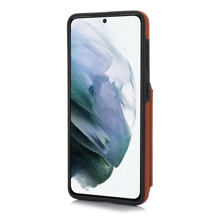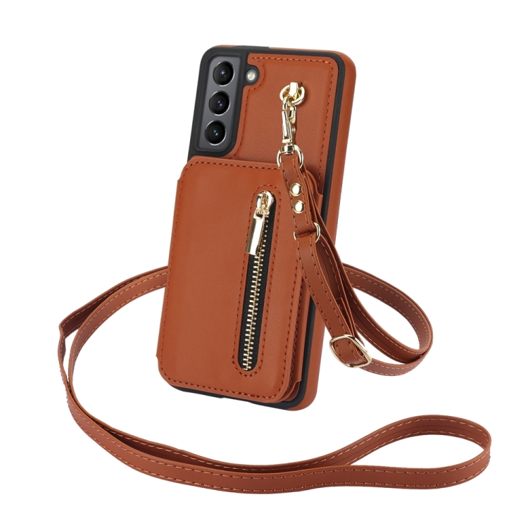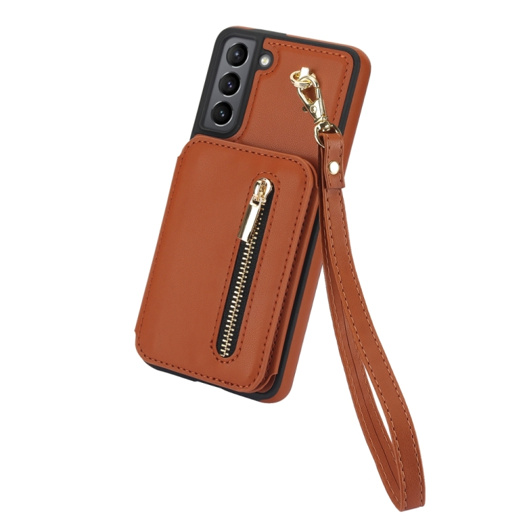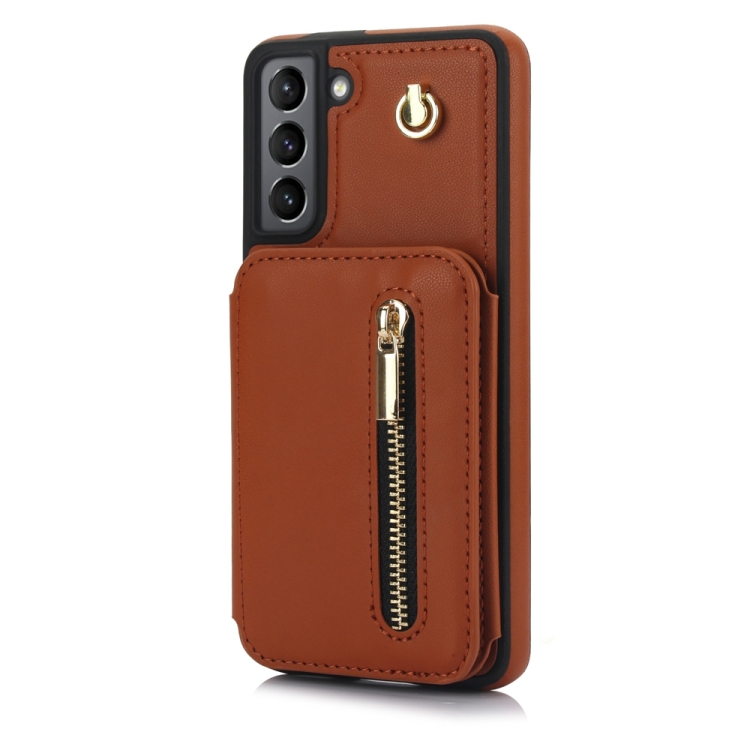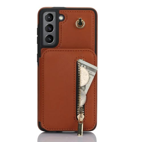 Estuche para Teléfono Samsung Galaxy S21 5G Ym006 con Bolsa para Tarjetas y Cremallera (Marrón)