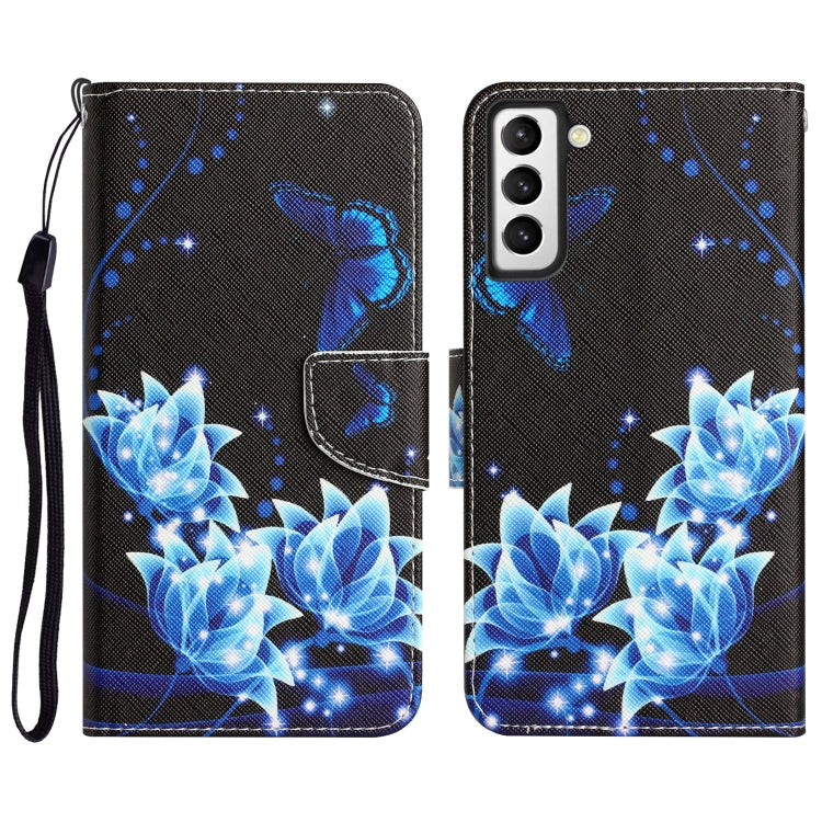 Para Samsung Galaxy S21 FE 5G Estuche para teléfono de cuero con dibujo coloreado (mariposa azul)