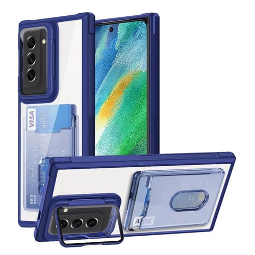 Estuche para Teléfono Samsung Galaxy S21 FE 5G TPU Híbrido Acrílico con Soporte para Tarjeta (Azul)