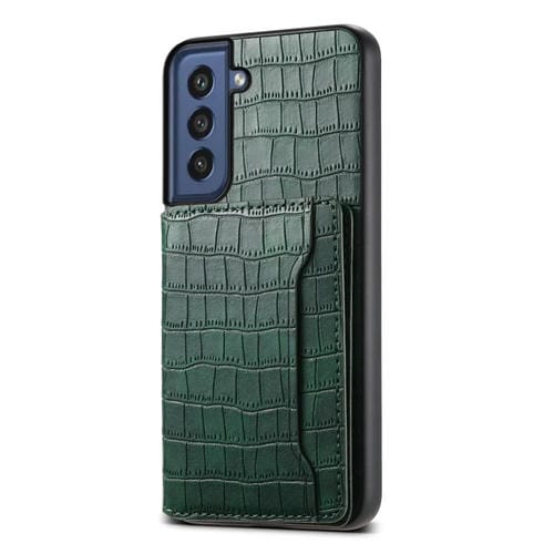 Funda para Teléfono Samsung Galaxy S21 FE 5G Diseño Bolsa de Tarjeta Textura Cocodrilo (Verde)