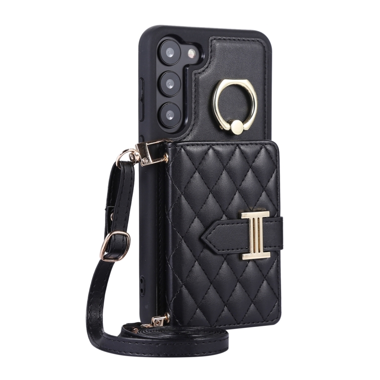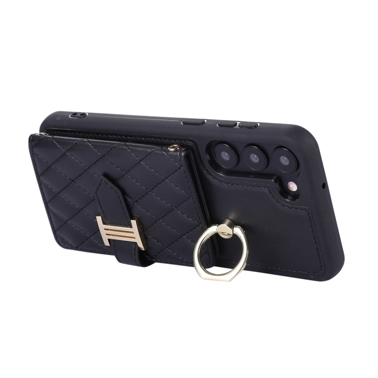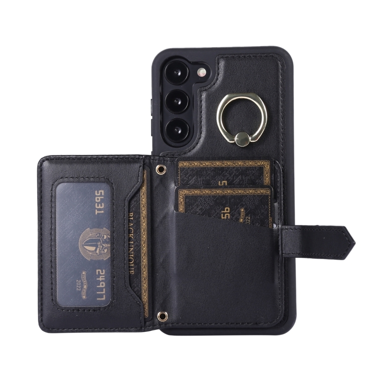 Funda para Teléfono Samsung Galaxy S21 FE 5G Horizontal Card Bag Ring Holder con Doble Cordón (Negro)
