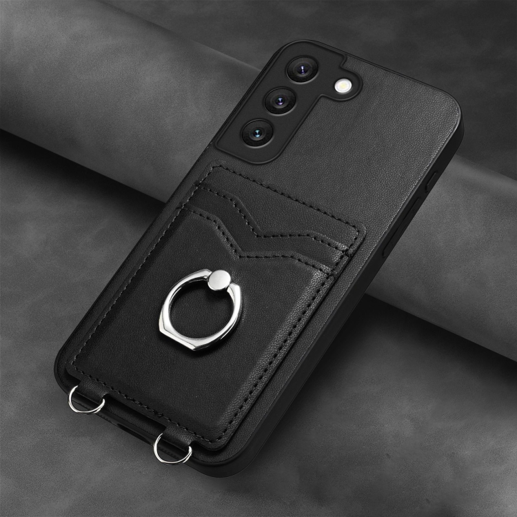Estuche para Teléfono Samsung Galaxy S21 FE 5G R20 con Soporte para Tarjeta y Anillo (Negro)
