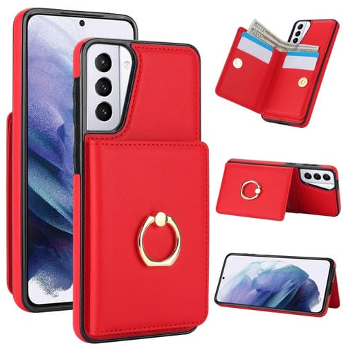 Estuche para teléfono Samsung Galaxy S21 FE 5G Rfid Antirrobo con Soporte para Anillo (Rojo)